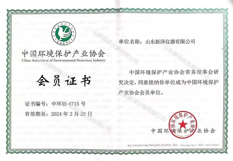 通過嚴格的資料審核以及業(yè)績評估,山東新澤儀器有限公司經中國環(huán)境保護產業(yè)協會常務理事會研究決定,正式成為中國環(huán)境保護產業(yè)協會會員單位。
