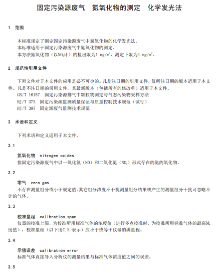 山東:固定污染源廢氣中氮氧化物的測定采用化學發光法
