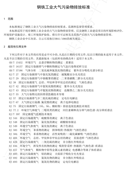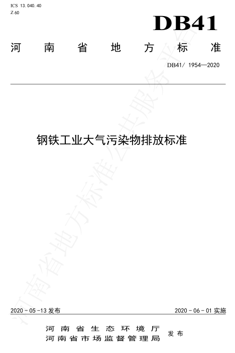 日前,河南發布地方標準《鋼鐵工業大氣污染物排放標準》,詳情如下: