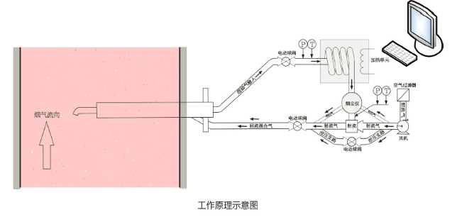 Sdust-110超低粉塵儀由發(fā)射、 接收單元、煙氣預(yù)處理模塊組成,通過對恒溫測量池內(nèi)煙氣的測量,間接得到煙氣中粉塵濃度,煙氣預(yù)處理模塊由采樣探頭、射流泵、加熱單元、壓力、溫度控制單元、恒溫測量池等部分組成,它完成將樣氣從煙道中抽出,并經(jīng)加熱裝置使煙氣溫度達(dá)到煙氣露點(diǎn)溫度之上,然后送入恒溫測量池進(jìn)行測量。