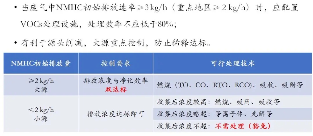 VOCs去除處理:收集的廢氣中NMHC初始排放速率<2 kg/h時(shí),收集后濃度不超可豁免VOCs處理,濃度達(dá)標(biāo)即可。