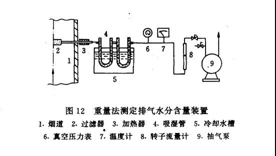 方法原理:由煙道中抽取一定體積的排氣,使之通過冷凝器,根據(jù)冷凝出來的水量,加上從冷凝器排出的飽和氣體含有的水蒸汽量,計算排氣中的含濕量。