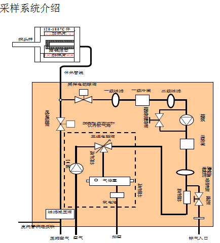 樣氣通過取樣探桿進入到取樣探頭內(nèi),經(jīng)過陶瓷濾芯過濾后,除去樣氣中的
